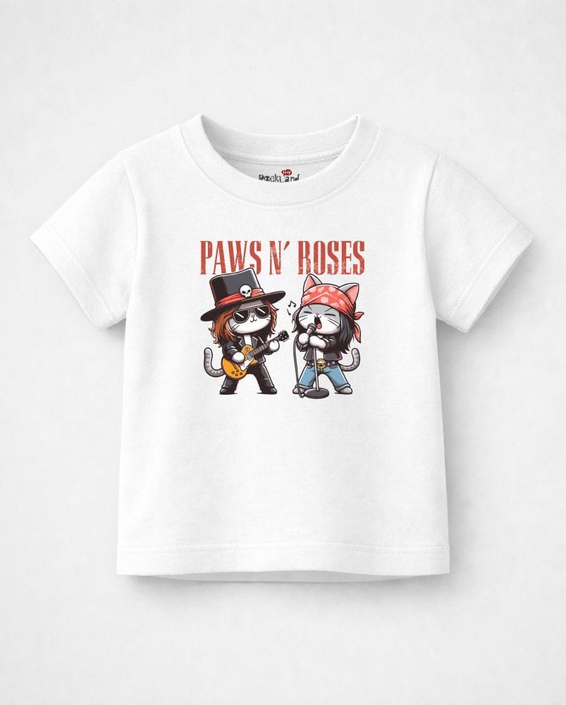 Apresentamos a Camiseta Infantil de Rock da banda Guns N’ Roses, um item essencial para os mini fãs do bom e velho rock’n’roll. Com um toque divertido, essa estampa brinca com o tema “Paws N’ Roses” — gatos fofos e rock clássico em perfeita harmonia!