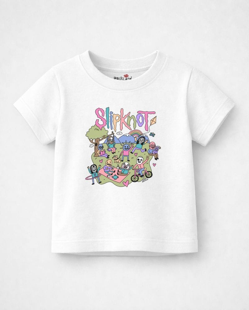 Vista os pequenos com atitude e conforto! A nossa camiseta infantil de rock Slipknot Cute é feita com malha 100% algodão, garantindo um toque suave e respirável para a pele das crianças.