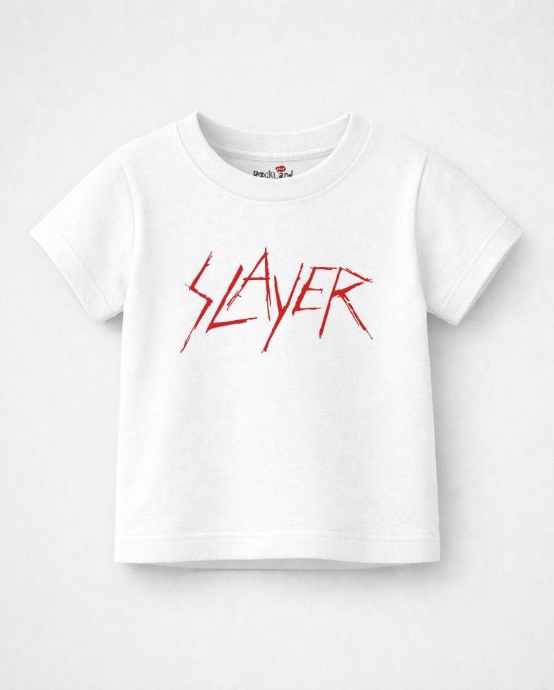 Com uma estampa que homenageia a icônica banda Slayer, esta camiseta é perfeita para jovens fãs de rock que querem expressar estilo e atitude desde cedo. Apaixonante e cheia de personalidade!